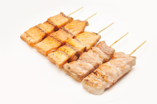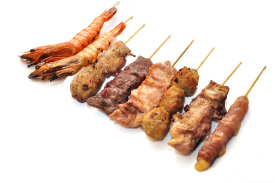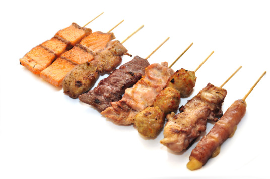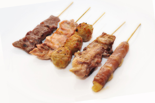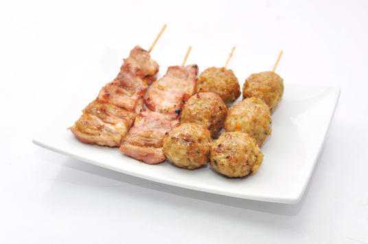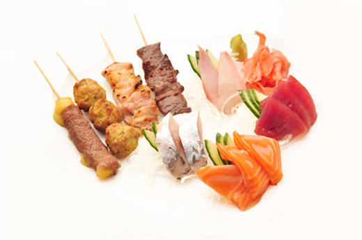 Soupe, Salade, Riz 10 Tranches de sashimi assortis, 4 brochettes (1 poulet, 1 boulette de poulet, 1 boeuf, 1 boeuf au fromage)
