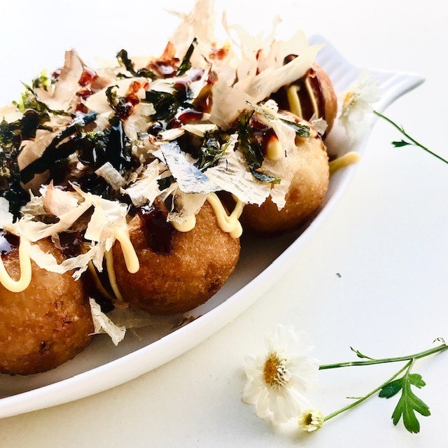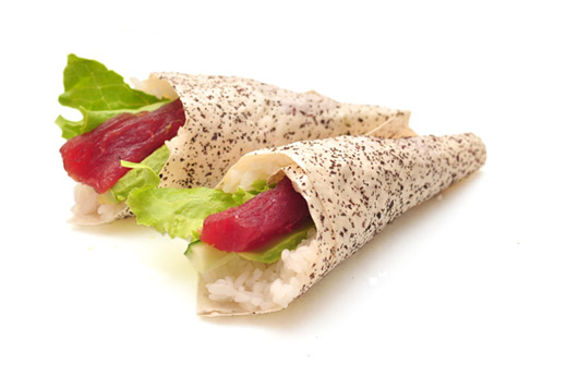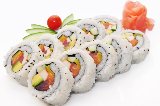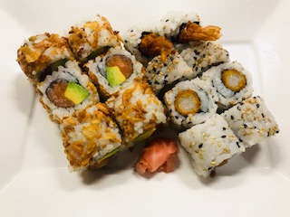 tempura crevette et cheese à l'intérieur;tranche de saumon thon avocat dorade à l'extérieur,servi par 8 pièce