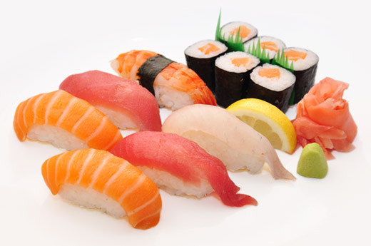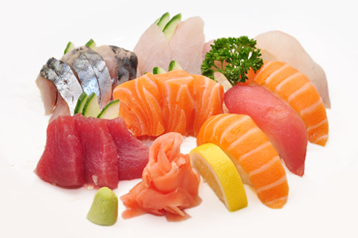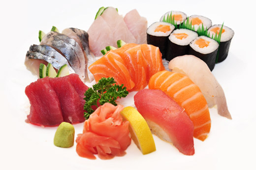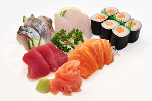 pour 2 pers 2 soupe, 2 salade, 2 riz 26 sashimi assortis, 10 sushi assortis, 6 maki, 6 maki california