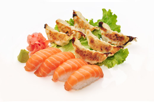 Soupe, Salade, Riz 6 Gyoza( poulet et légume) 4 Sushi saumon