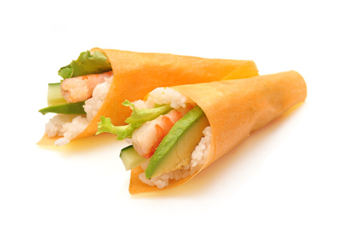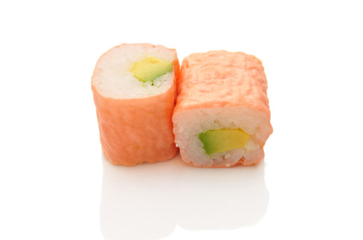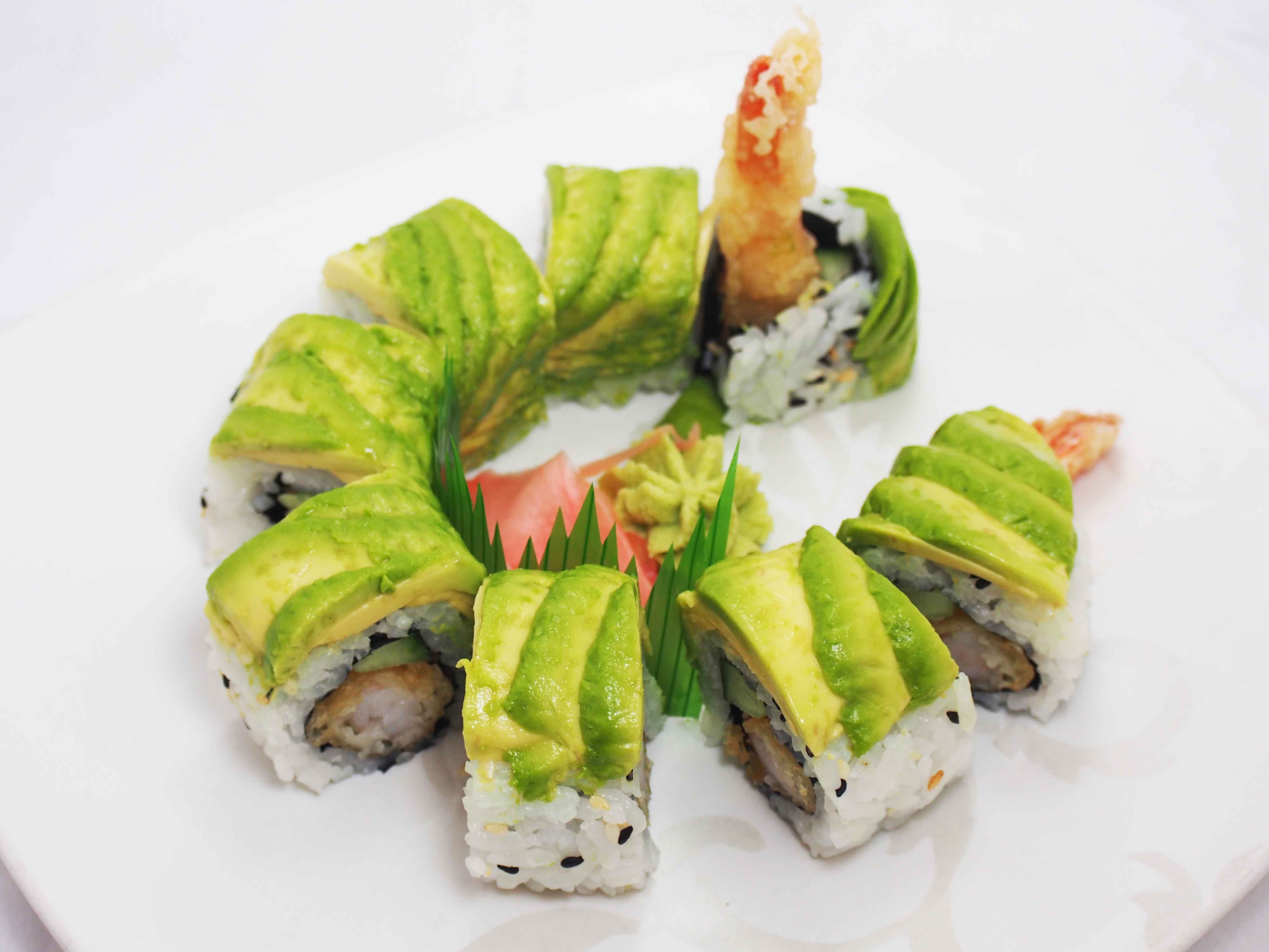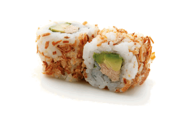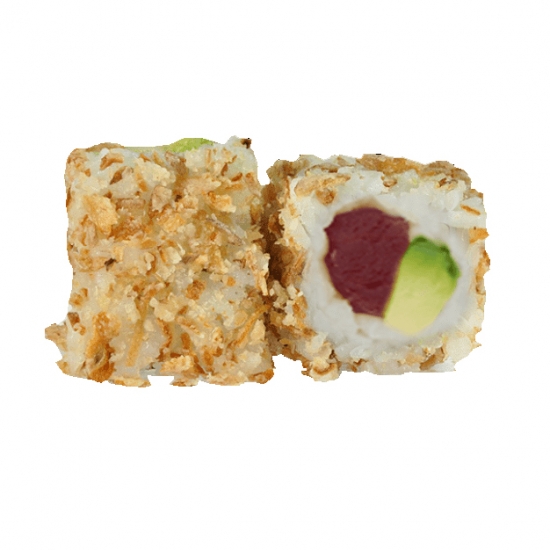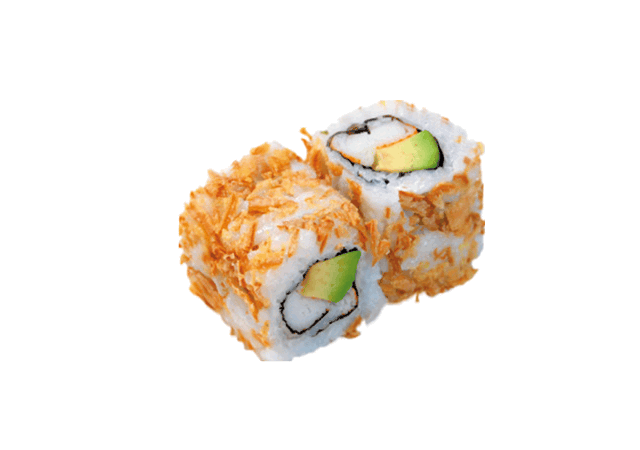 tempura crevette et fromage a l'intérieur;tranche de avocat fine à l'extérieur;servi par 8 pièce