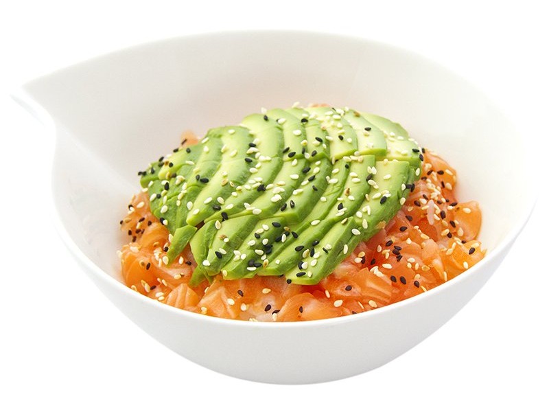 saumon cuit/avocat/tomate cerise/salade algue/mangue(selon la saison)/edamane/
