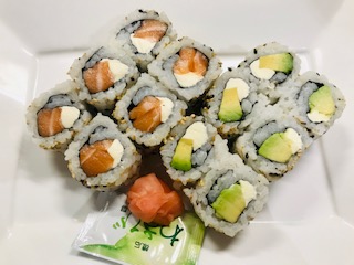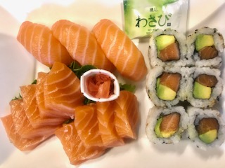 Soupe, salade, riz9 sashimi saumon3 sushi saumon6 california saumon avocat