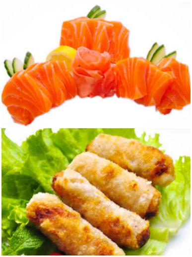 1. 6california Avo+Saumon, 2. 2brochette saumon, 3. 4sushi saumon, 4. 4brochette varie, 5. neige roll saumon cheese, 6. 1bolw chirachi saumon, 7. 6 sashimi saumon, 8. 4 nême poulets, 9. 6maki saumon+2sushi saumon, 10. 6 Gyoza poulet, 11. 8maki royale, 12. nouille sauté au légume, 13. 4tempura crevette, 14. 4tempura fromage, 15. california saumon+cheese.